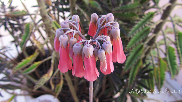 Essa espécie é conhecida como borboletas rosas, ela é um híbrido de outras kalanchoe e a coloração rosada parece um bordado na folha verde. Um sonho, nunca vi dela pra vender.