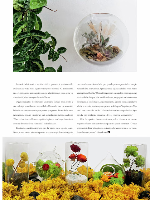 Hoje saiu uma matéria sobre terrários no Jornal Correio Braziliense, respondi algumas perguntas sobre terrários e claro, falei sobre terrários abertos de suculentas (que são os meus preferidos). Minha amiga e paisagista Rose Antonelli também fez parte e deu suas dicas. Foi na "Revista do Correio" uma matéria super bonitinha e bem escrita (devendo os créditos), mas não saiu na versão online, então digitalizei e abaixo você pode ler as dicas pra montar ainda hoje o seu!!!
