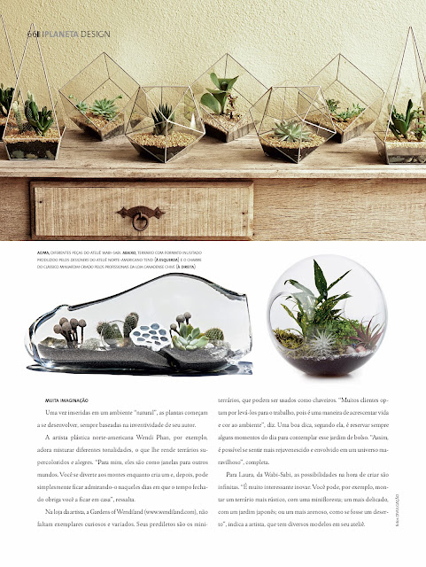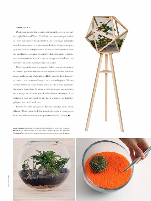 Saiu na última edição da Revista Docol (ed.19), uma matéria sobre terrários e eu tive a oportunidade de participar, abaixo você pode ler na íntegra a reportagem e o link da revista é esse, pra quem gosta de decoração e arquitetura vale a pena conferir. Texto de Renata Caetano a quem agradeço de coração!